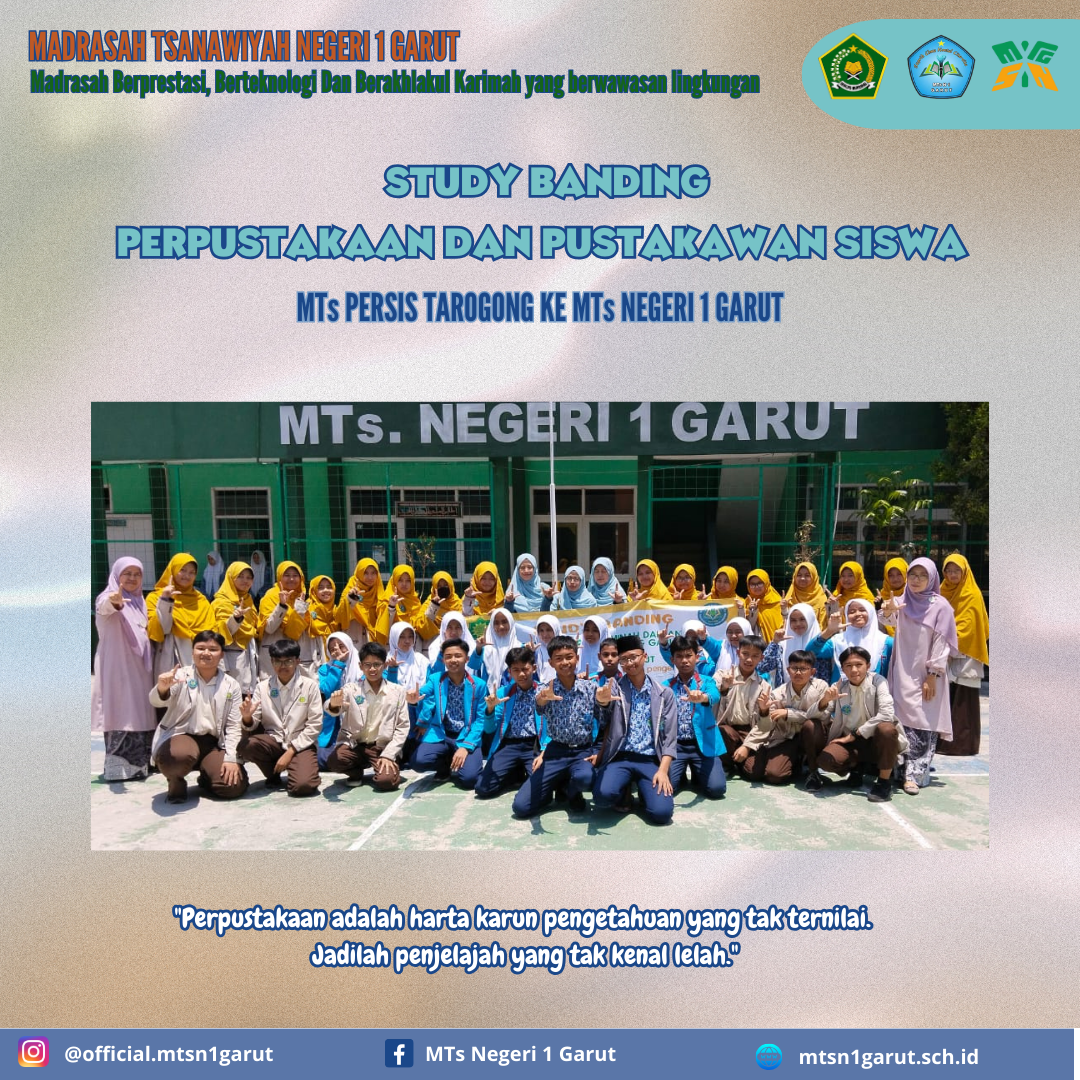 Alhamdulillah pada hari ini, Kamis, 19 Oktober 2023 Kegiatan Study Banding Perpustakaan dan Pustakawan siswa MTs Persis Tarogong ke MTs Negeri 1 Garut. Perpustakaan Negeri 1 Garut ditahun 2021 telah berhasil meraih nilai Akrediatasi A.Dengan prestasi ini Kepala Perpustakaan MTs Persis Tarogong mencoba untuk menelusuri dan melihat langsung apa kelebihan dari perpustakaan in...