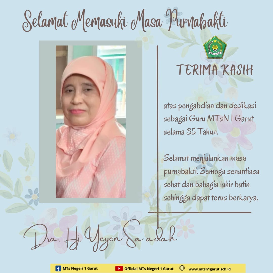 Tak terasa 3 tahun sudah putra putri merasakan pendidikan terbaik di MTs Negeri 1 Garut , dan kini sudah berdiri di ujung bangku sekolah tingkat SMP. Ada perasaaan bangga bercampur sedih yang dirasakan. Karena, menimba ilmu di tempat terbaik pasti selalu menyenangkan, walaupun pada akhirnya di setiap pertemuan selalu ada perpisahan. Kami segenap Keluarga Besar Bapak/Ibu Guru &n...